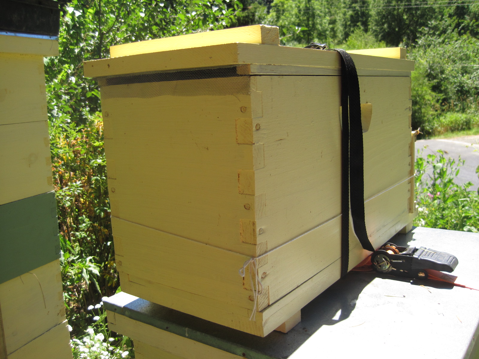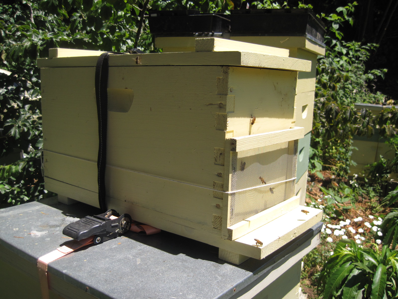 Summer brings travel opportunities for many of us, and for me it means making the annual pilgrimage to spend time with family in the Midwest. Imagining all the possible conditions my hives will be exposed to while I’m away makes me look at them in an entirely different way. Heat, drought, dearth, robbers and predators may come without me being able to mediate any of their effects. While I never feel I’ve perfectly prepared my bees for a long absence, I try to give the smallest and potentially most vulnerable hives some special attention.
